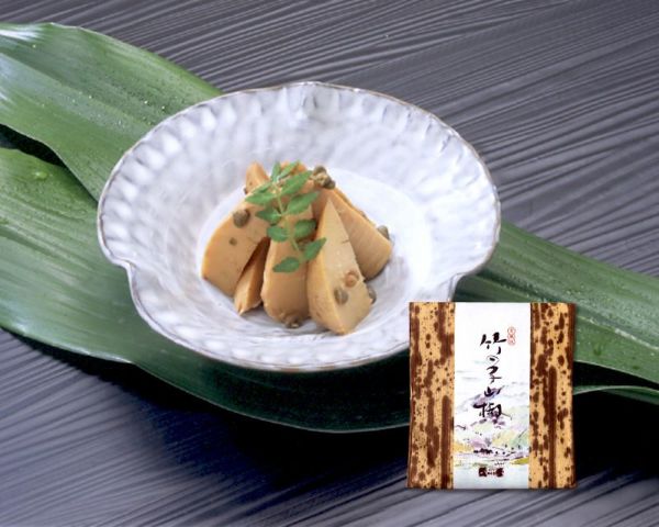 手入れされた竹藪から上質な筍が収穫されます。その筍に実山椒を加え、ピリッとした香辛味を添えた、しぐれ煮の逸品です。